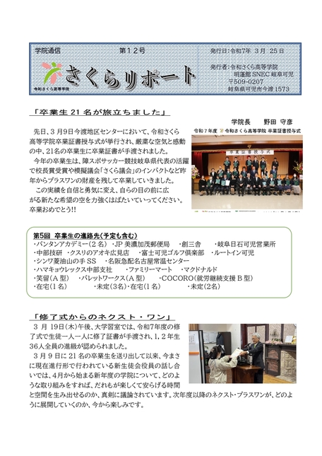 3月9日(月)10:00~11:30今渡地区センター2Fホールにおいて令和7年度令和さくら高等学院卒業証書授与式が執り行われました。