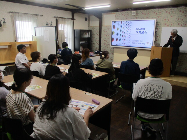 この日は、朝から7月初旬とは思えない季節外れの猛暑日でしたが、皆、学院長の説明に、メモを取りながら、真剣に耳を傾けてみえました。