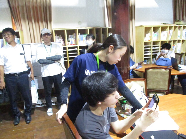 施設見学では、その時ちょうど行われていたトリコムの新機能である「デジタル学習板」の説明を興味深げに、生徒の手元をのぞき込んだり、質問したりしながら、視聴してみえました。
