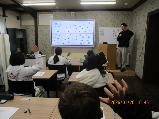 そんなことが気になりつつ、講話を聴いていると、次にゲームが始まりました。このゲームを通して、「法則」をつかむことで、すらすらと課題が解決できることが実感できました。
