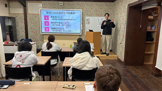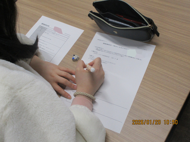 1月20日(火)10:30~11:20、第1学年を対象に、株式会社ファミリー代表取締役 吉田正様を講師にお招きし「幸せになるための3つの条件」をテーマに職業講話を開催しました。