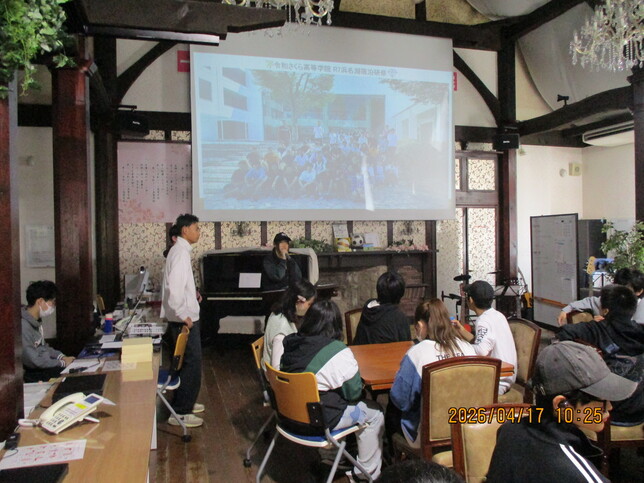はじめに、生徒会役員から、学院の五大行事である(1) ボーリング大会、(2) 浜名湖研修、(3) スクーリング、(4) クリスマス音楽会、(5) サッカーの日についての説明がありました。