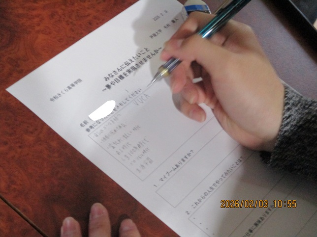 生徒は皆、先生の大切なメッセージを聞き漏らすまいと、真剣にメモを取りながら講話に耳を傾けていました。