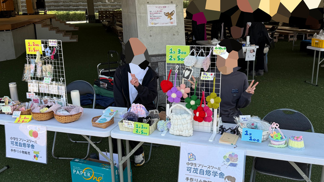 ホール脇では、「可茂自悠学舎」の皆さんが、手作りの小物を販売していました。
