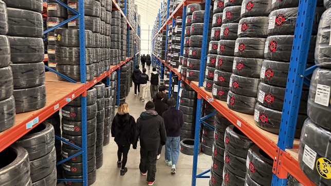 そして、倉庫には、出荷を待つタイヤが10メートル以上の高さに積み上げられ圧巻の情景を作っています。出荷票には、千葉県、茨城県、神奈川県…などなど全国のタイヤショップやユーザーさんの宛名が記され、シバタイヤが如何に全国に認知されたタイヤであるかがわかりました。