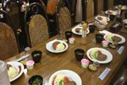 1日の日程は、下表の通り濃密です。楽しみは一流シェフの手による朝食と夕食、歩いて行ける夜の温泉です。