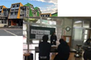 福岡空港からバスで1時間半ほどの「源じいの森」で宿泊します。対面指導の多くは川崎町コミュニティーセンターなど川崎町の公共施設で行われます。
